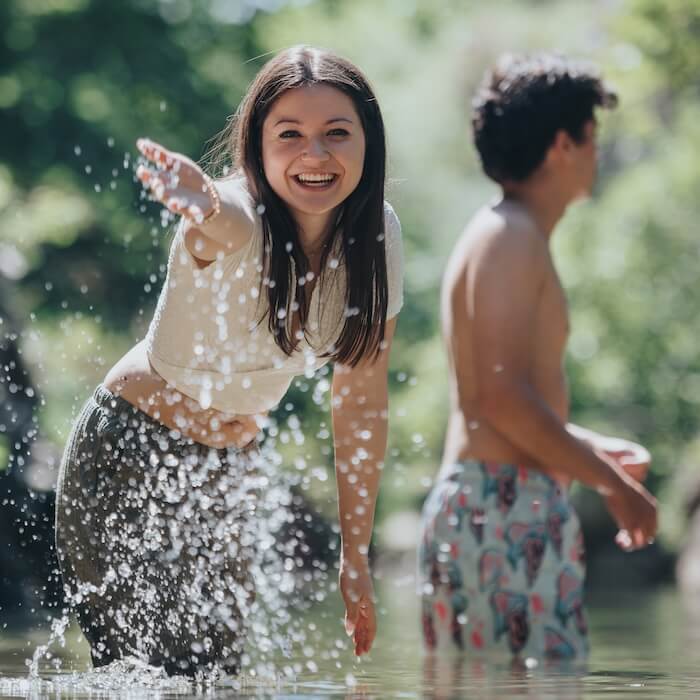 Reke ne moremo priganjati, lahko pa spoznamo njen tok in sebe v njem. Delavnica Wild Blue je namenjena uglasitvi s tem, kar je prisotno: šumenje potoka, hlad vodne gladine, ples svetlobe na bregu, prš kapljic na koži in druge preproste reči, ki nas vabijo k zavedanju in čutenju svoje povezanosti s svetom.